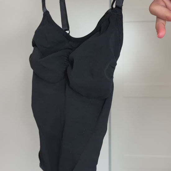 Støtte og løft til bryst og baller. Udglattende effekt på ryg og mave.